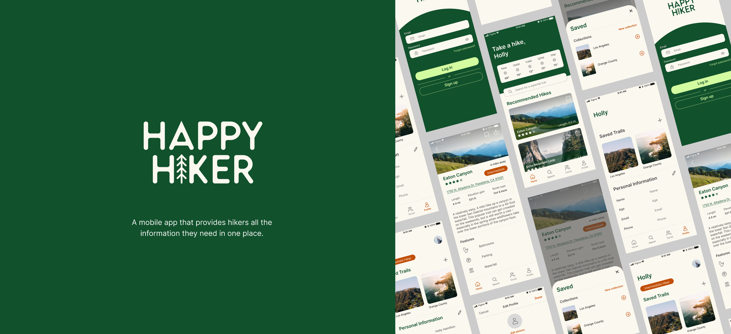 Happy Hiker is an app that simplifies the hiking experience in a one-stop platform by providing comprehensive trail information to its users. It encourages and allows hikers to spend more time on the trail and less time online by giving them all the tools necessary to be prepared.